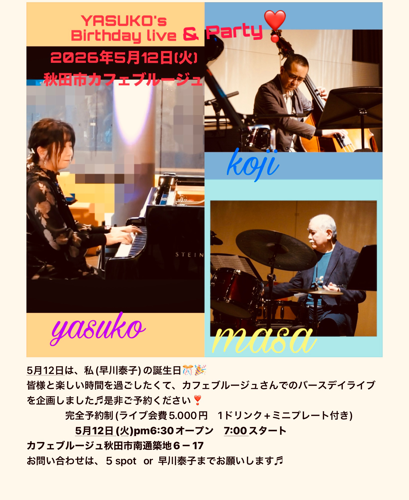 秋田を本拠地として活躍するジャズピアニスト早川泰子 のオフィシャルサイトです